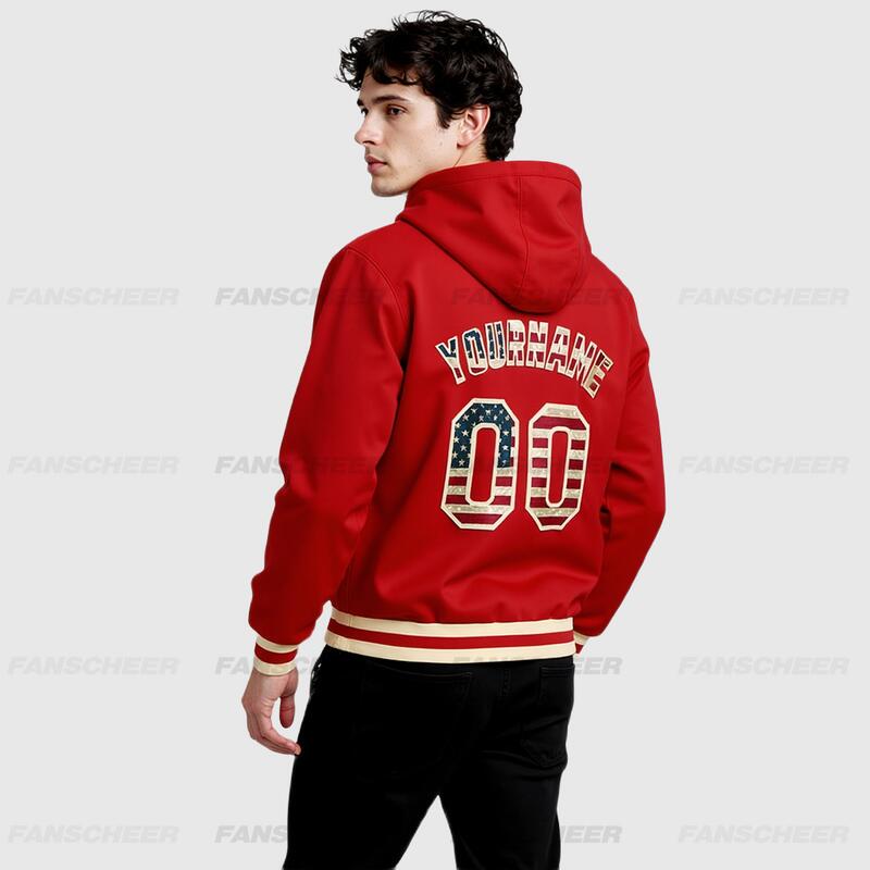 パーカー スポーツウェア レッド フーディ ジャケット チーム名 背番号 胸番号入り ロゴ ネーム カスタマイズ可能