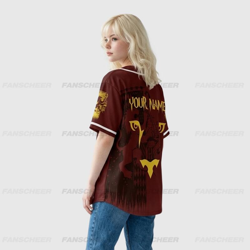 野球 T シャツ スカーレットレッド ライオン 魔法学校 名前 チーム名 ロゴ 番号入り パーソナライズ対応 ユニセックス